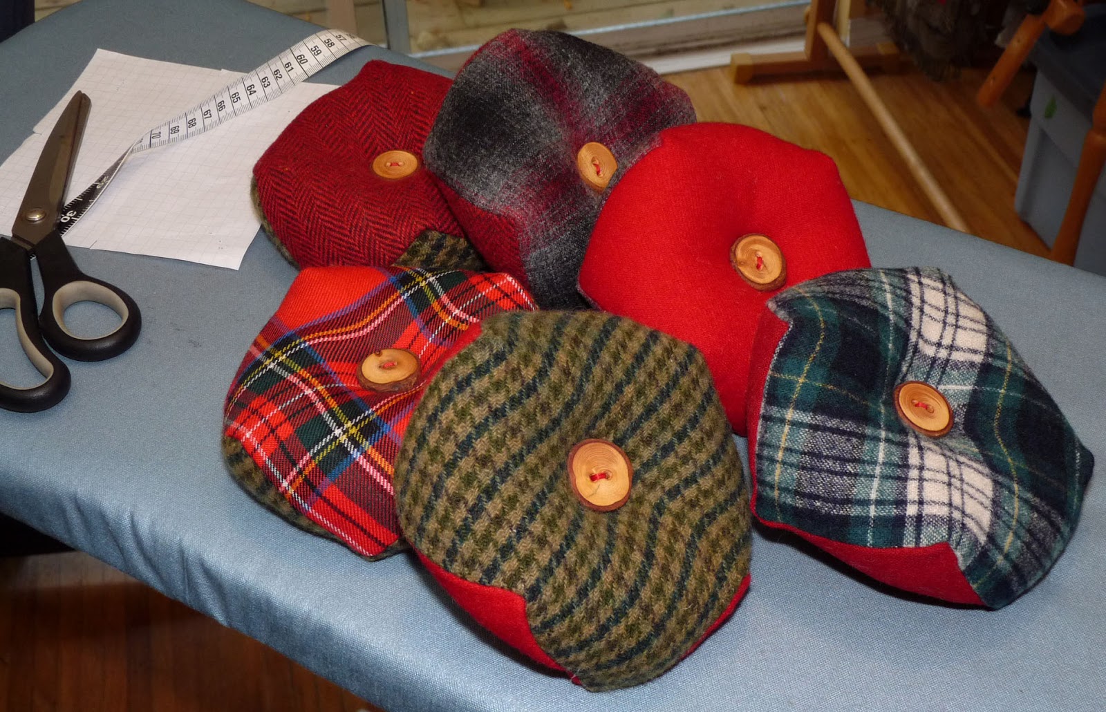 So that’s what that shape is called! I put an elastic wrist strap on mine and wear it all the time when sewing. I like your tartan ones a lot!