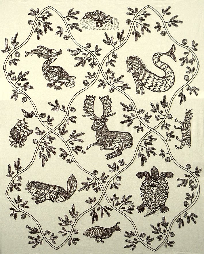 | Animalia Paradoxa, 2018. Hand embroidery, wool and cotton on linen. 32"x44" |